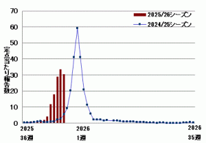 ⼤阪市では2025年第47週(2025年11⽉17⽇から11⽉23⽇)に定点当たり報告数が33.59となり、警報レベルの開始基準である「30」を超えました。