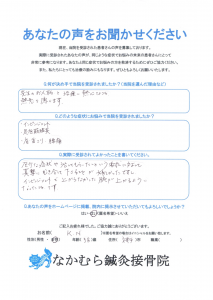 「なかむら鍼灸接骨院で2ヶ月の間に5回施術を受けました」
